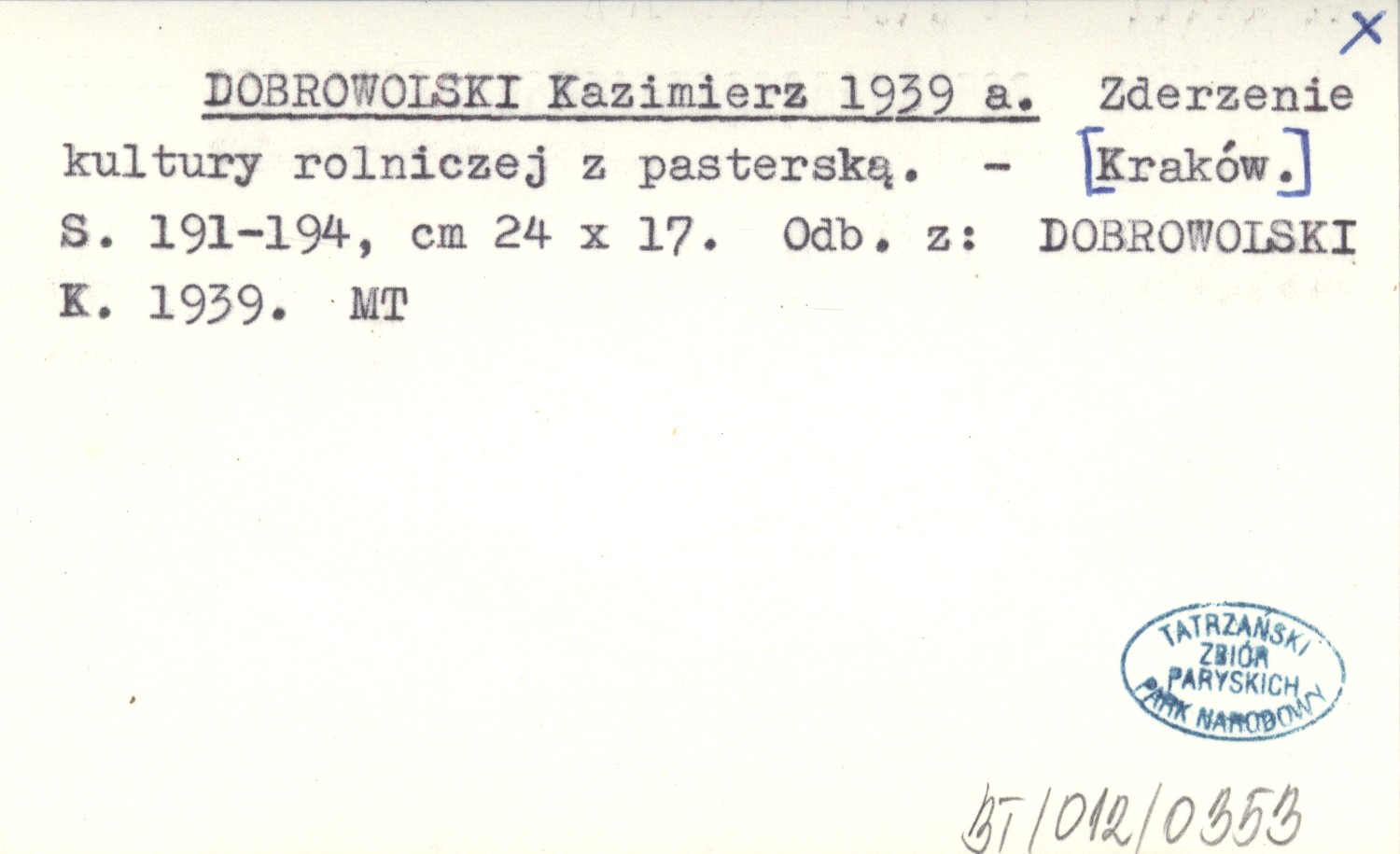DOBROWOLSKI Kazimierz 1939 a Zderzenie kultury rolniczej z pasterską.