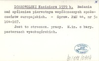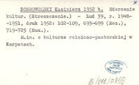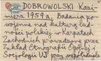 DOBROWOLSKI Kazimierz 1959 a Badania powojenne nad kulturą ludowości polskiej w Karpatach Zachodnich prowadzone przez Zakład Etnografii Ogólnej i Socjologii UJ przy współudziale Zakładu Etnografii IHKM w Krakowie.