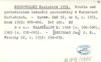 DOBROWOLSKI Kazimierz 1951 a Studia nad pochodzeniem ludności pasterskiej w Karpatach Zachodnich.