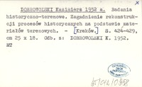 DOBROWOLSKI Kazimierz 1952 a Badania historyczno-terenowe. Zagadnienie rekonstrukcji procesów historycznych na podstawie materiałów terenowych.