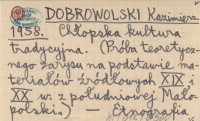 DOBROWOLSKI Kazimierz 1958 Chłopska kultura tradycyjna. (Próba teoretycznego zarysu na podstawie materiałów źródłowych XIX i XX w. z południowej Małopolski).