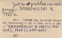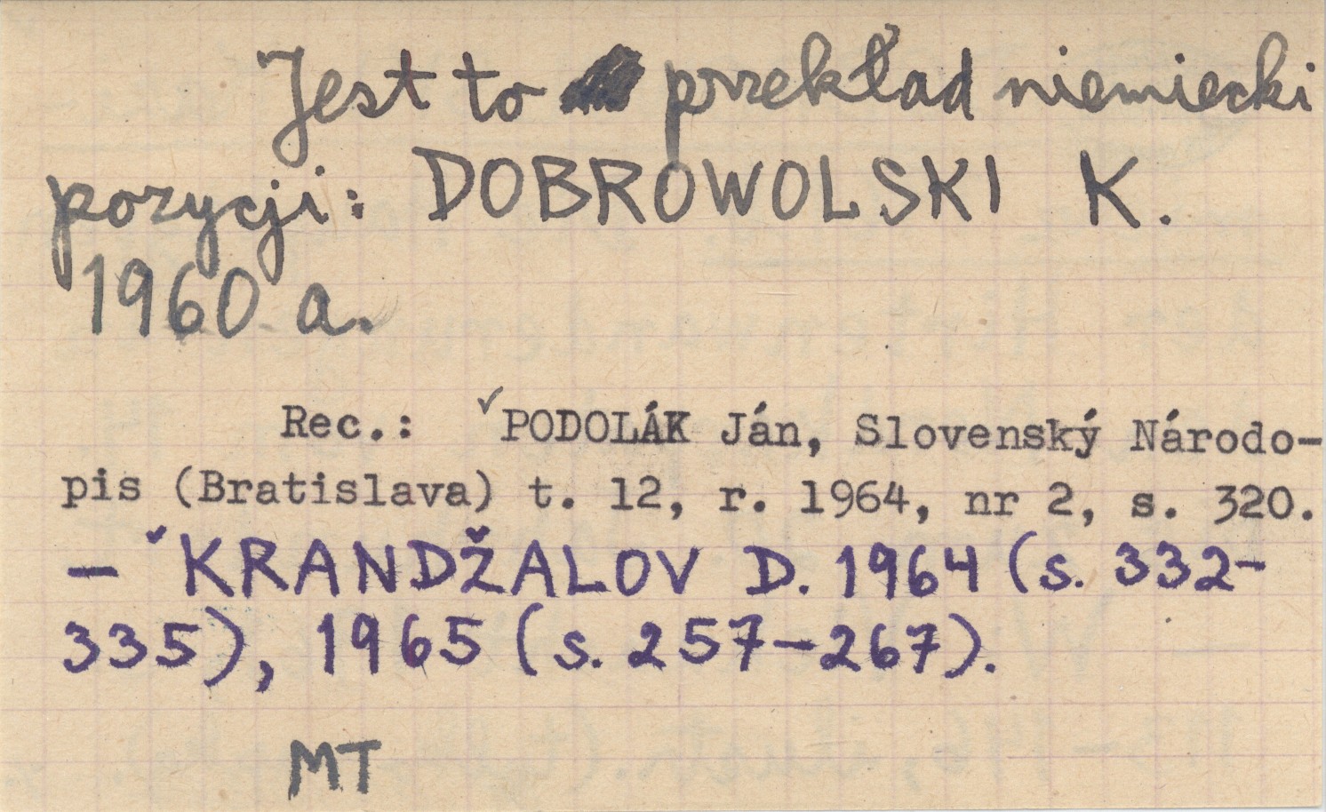 Viehzucht. , S. 113-146, il. (tylko mapka). Jest to przekład niemiecki pozycji: DOBROWOLSKI K. 1960 a REC: PODOLÁK Ján, Slovenský Národopis (Bratislava) t. 12, r. 1964, nr 2: 320. ; KRANDŽALOV D. 1964: 332-335. ; 1965: 257-267. ;