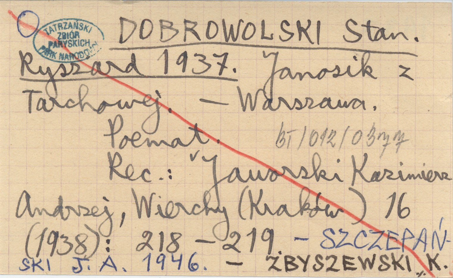Warszawa , 30, [1] s. REC: JAWORSKI Kazimierz Andrzej, Wierchy (Kraków) 16 (1938): 218-219. ; SZCZEPAŃSKI J. A. 1946 ; ZBYSZEWSKI K. 1937 ;