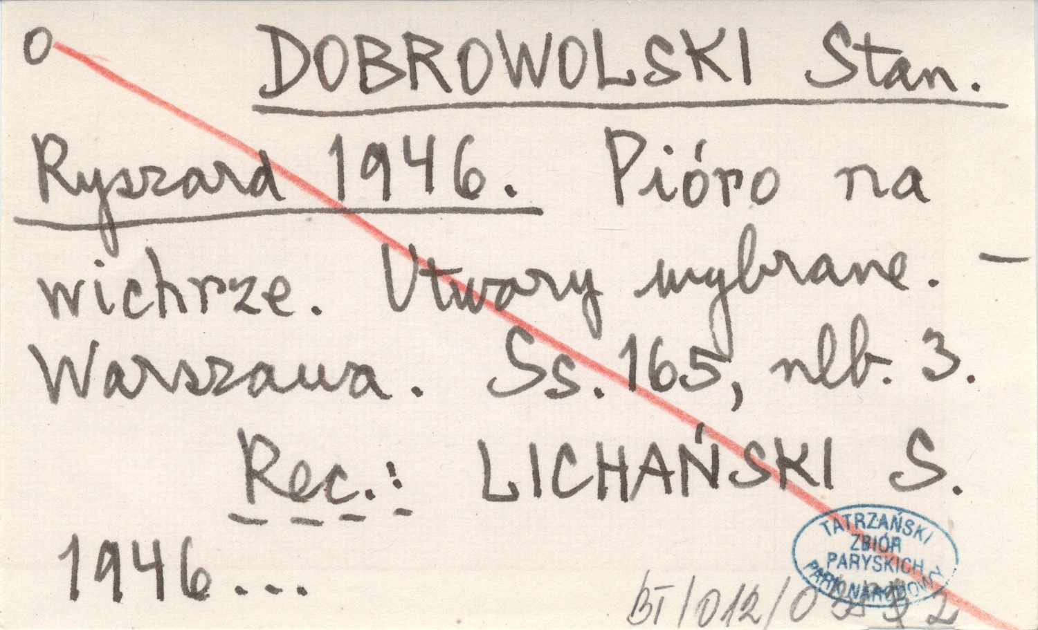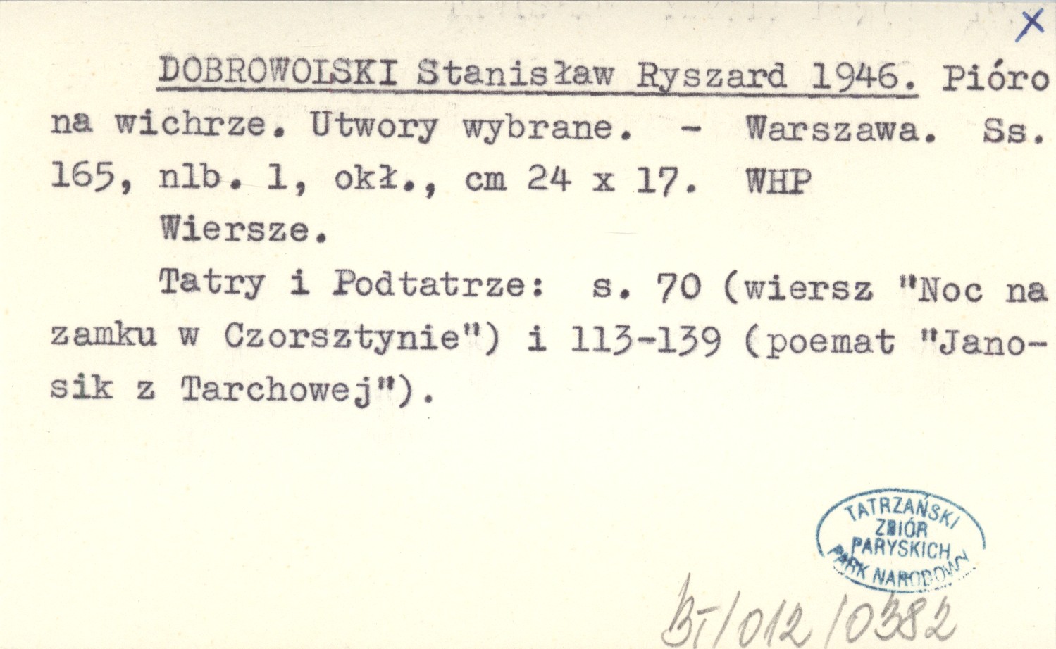 DOBROWOLSKI Stanisław Ryszard 1946 Pióro na wichrze. Utwory wybrane.