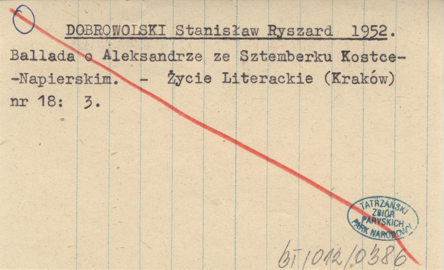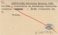 DOBROWOLSKI Stanisław Ryszard 1952 Ballada o Aleksandrze ze Sztemberku Kostce-Napierskim.