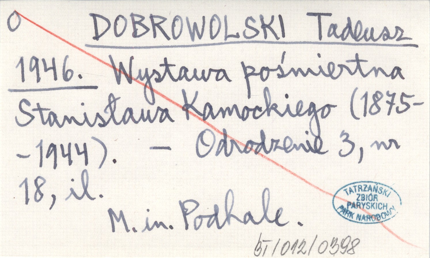 DOBROWOLSKI Tadeusz 1946 Wystawa pośmiertna Stanisława Kamockiego (1875-1944).