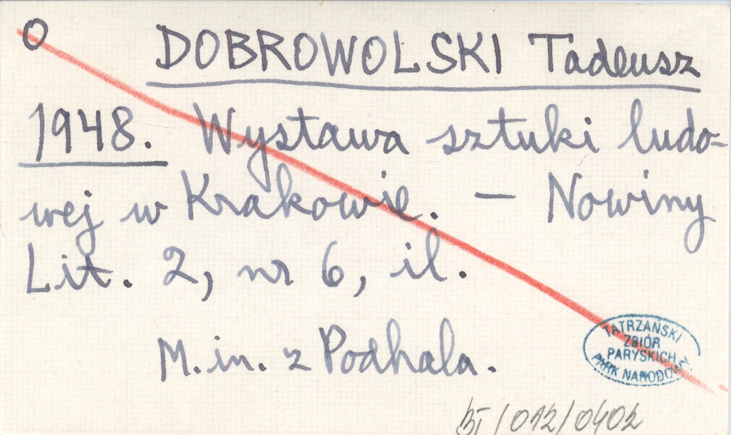 DOBROWOLSKI Tadeusz 1948 Wystawa sztuki ludowej w Krakowie.