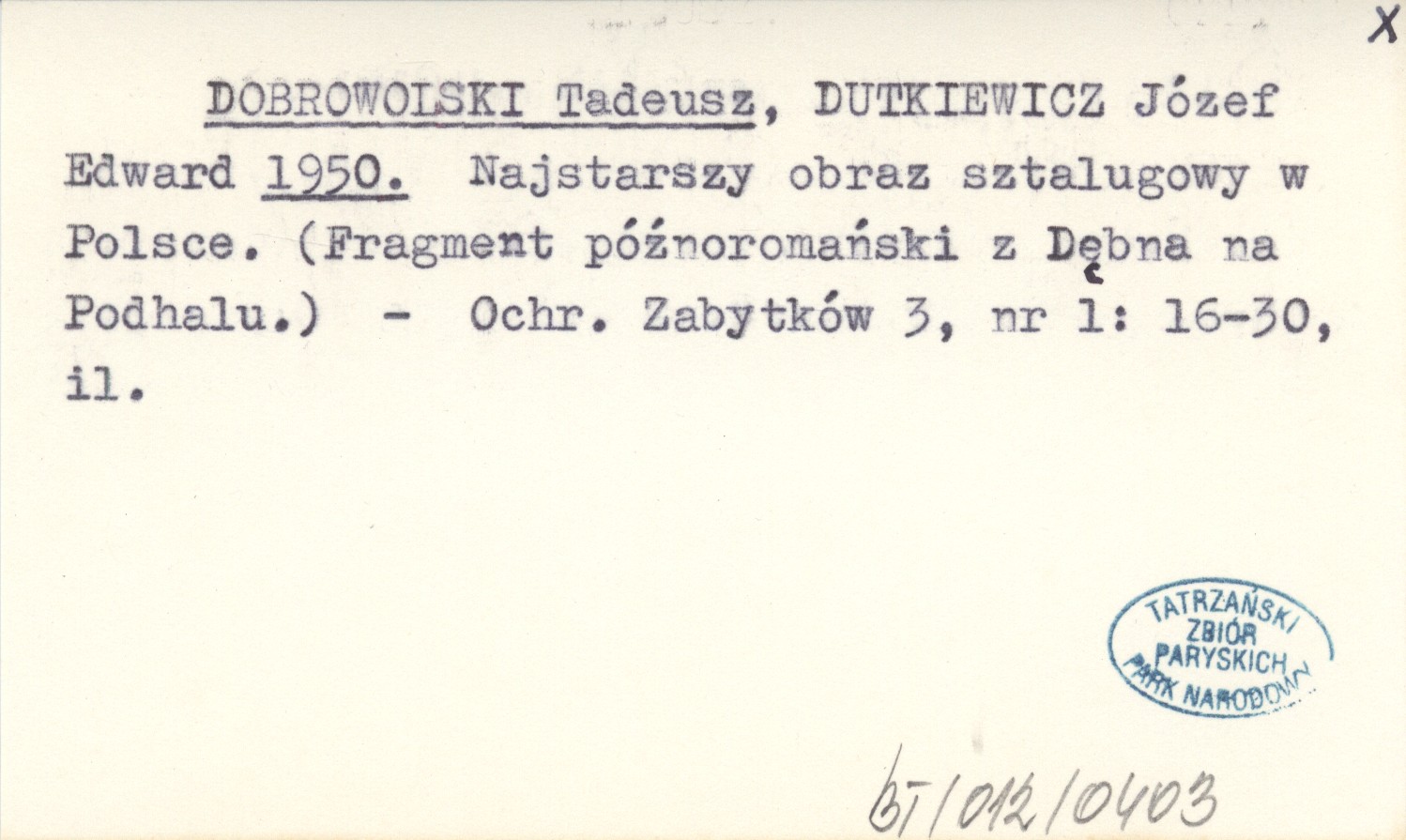 DOBROWOLSKI Tadeusz DUTKIEWICZ, Józef Edward. ; 1950 Najstarszy obraz sztalugowy w Polsce. (Fragment późnoromański z Dębna na Podhalu).