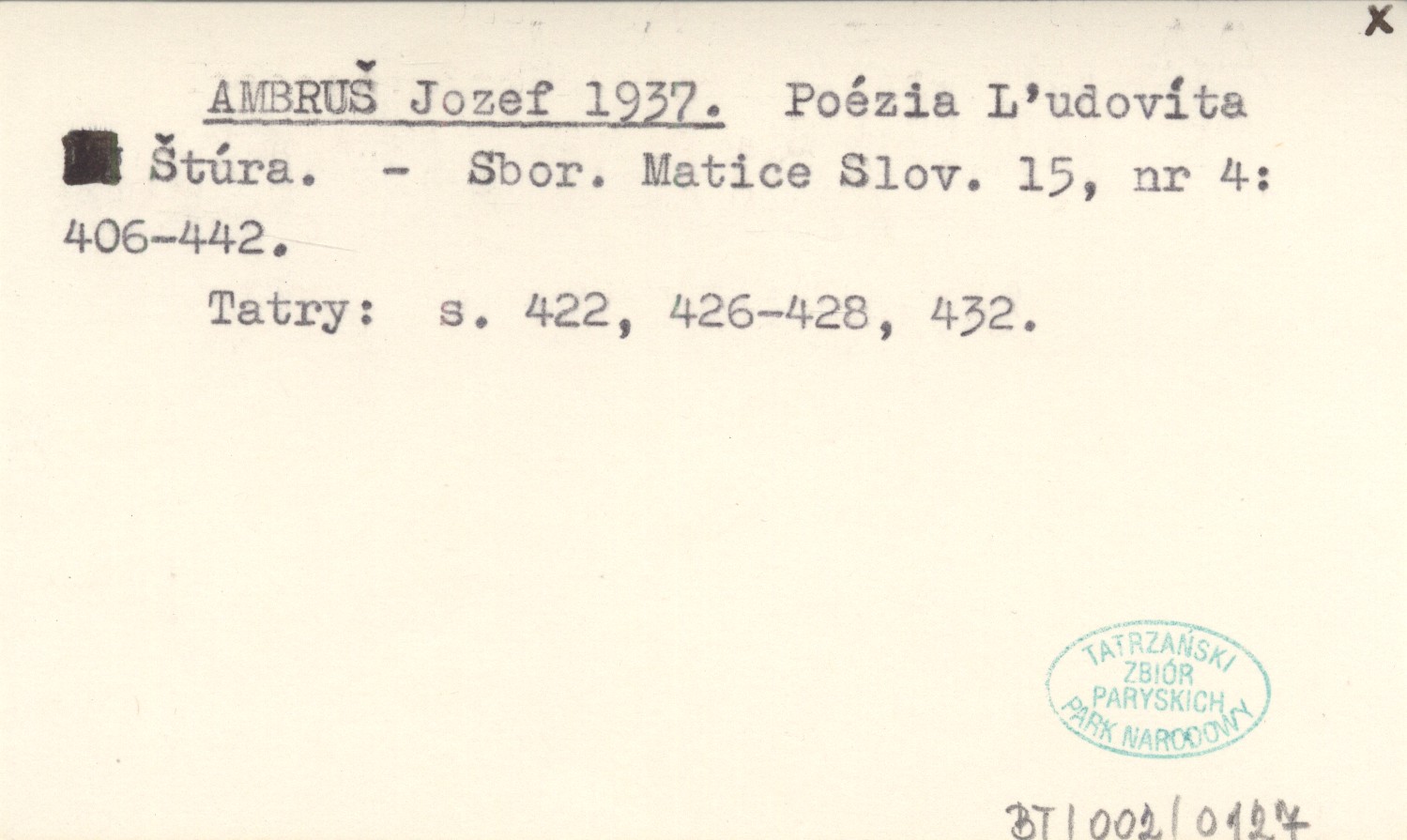 Sborník Matice Slovenska, 15, nr 4: 406-442. Tatry: s. 422, 426-428, 432.