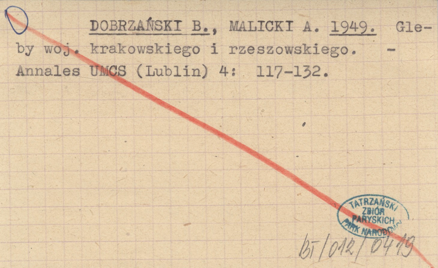 DOBRZAŃSKI B. MALICKI, A. ; 1949 Gleby woj. krakowskiego i rzeszowskiego.