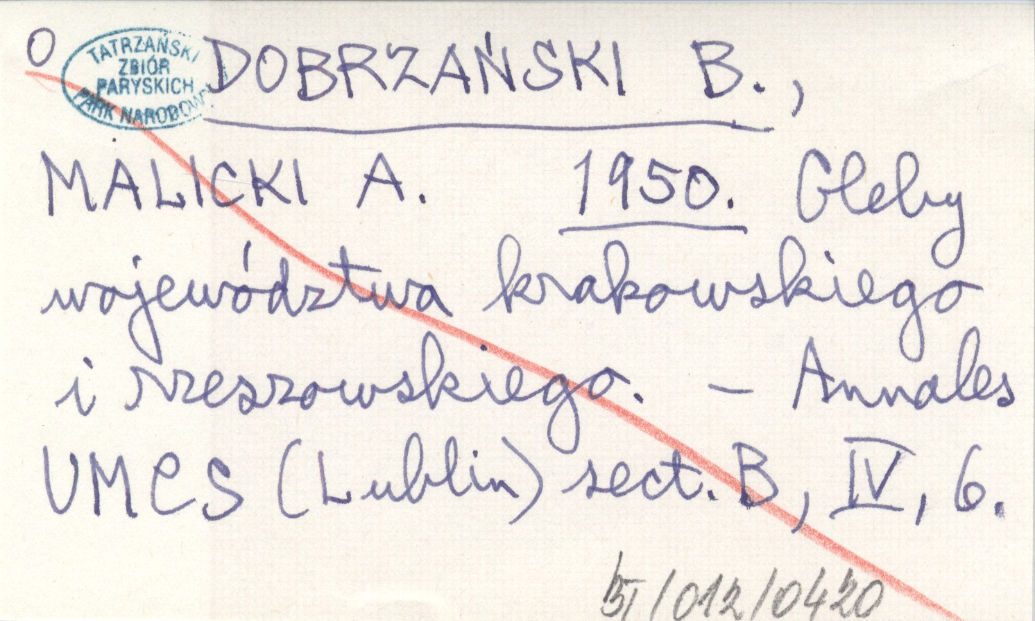 DOBRZAŃSKI B. MALICKI, A. ; 1950 Gleby województwa krakowskiego i rzeszowskiego.