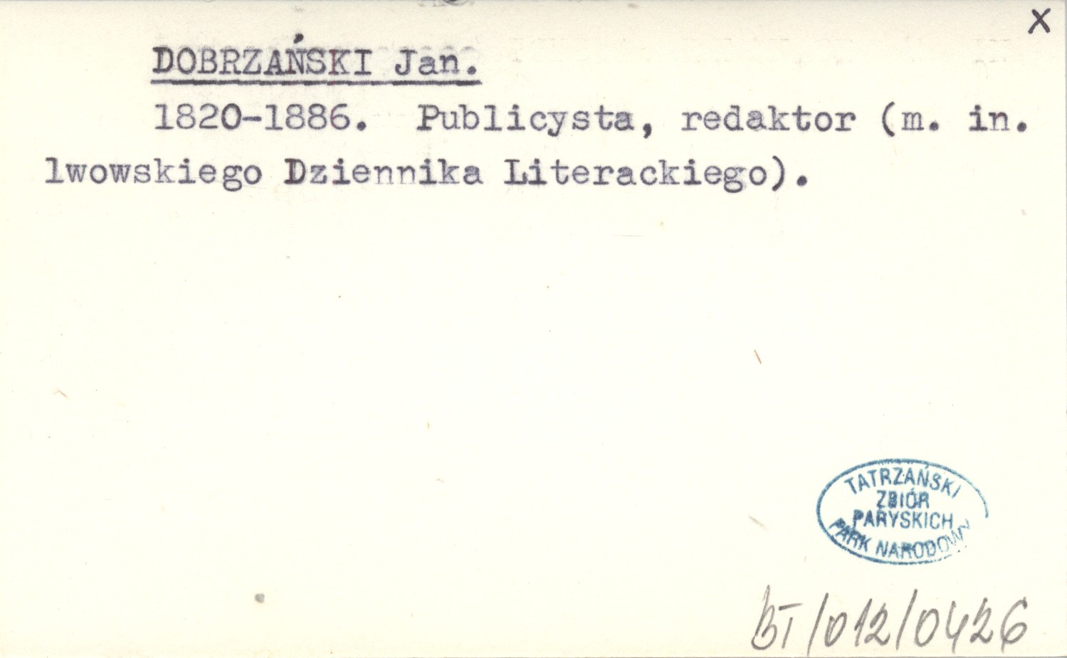 1820-1886. Publicysta, redaktor (m. in. lwowskiego Dziennika Literackiego).