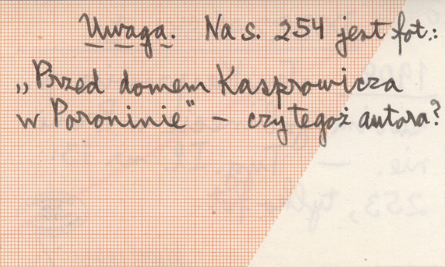 Tygodnik Ilustrowany, Nr 13: 253. Tylko fot. Na s. 254 jest fot.: "Przed domem Kasprowicza w Poroninie" - czy tegoż autora?