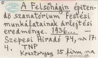 A Felsöhágin épitendö szanatórium festési munkálatainak árlejtési eredménye. 1936...