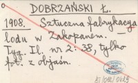 DOBRZAŃSKI Ł. 1908 Sztuczna fabrykacya lodu w Zakopanem.
