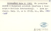 DOBRZAŃSKI Saba J. 1969 Ku początkom zamków w Karpatach polskich (Szaflary i Czorsztyn w Kotlinie Nowotarskiej).