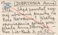 [DOBRZYCKA Anna] 1926 Skąd powstał zwyczaj ubierania drzewka na Boże Narodzenie? Według opowiadania górala przepisała Anna Dobrzycka.