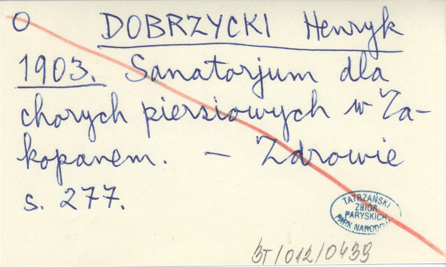 DOBRZYCKI Henryk 1903 Sanatorjum dla chorych piersiowych w Zakopanem.