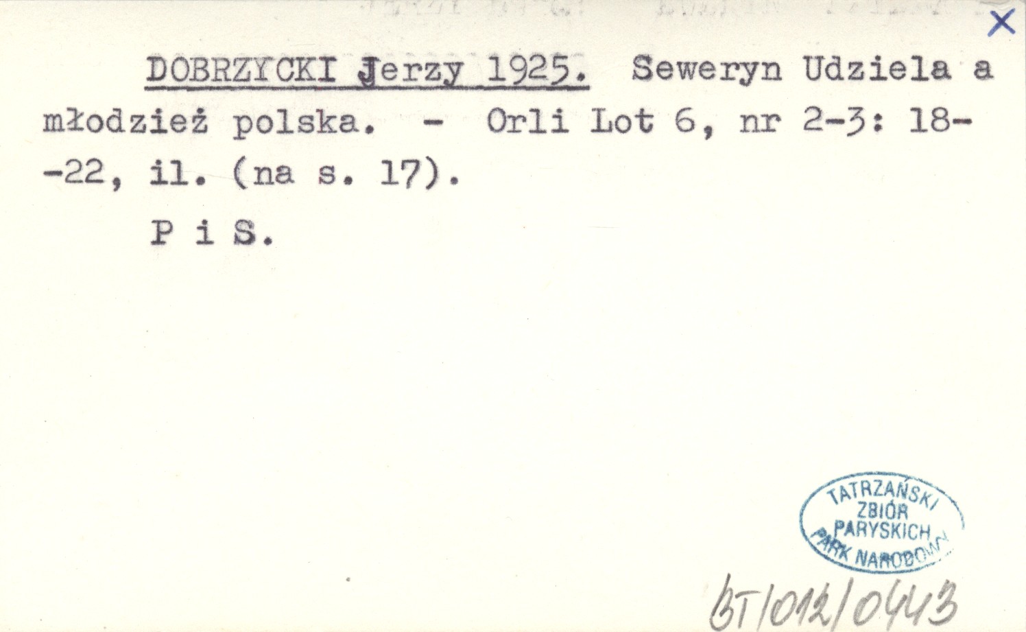 DOBRZYCKI Jerzy 1925 Seweryn Udziela a młodzież polska.