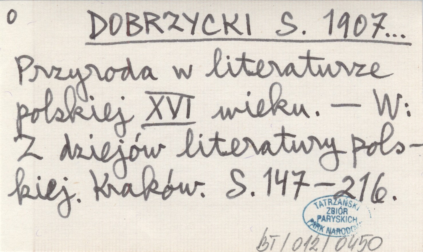 DOBRZYCKI S. 1907... Przyroda w literaturze polskiej XVI wieku.