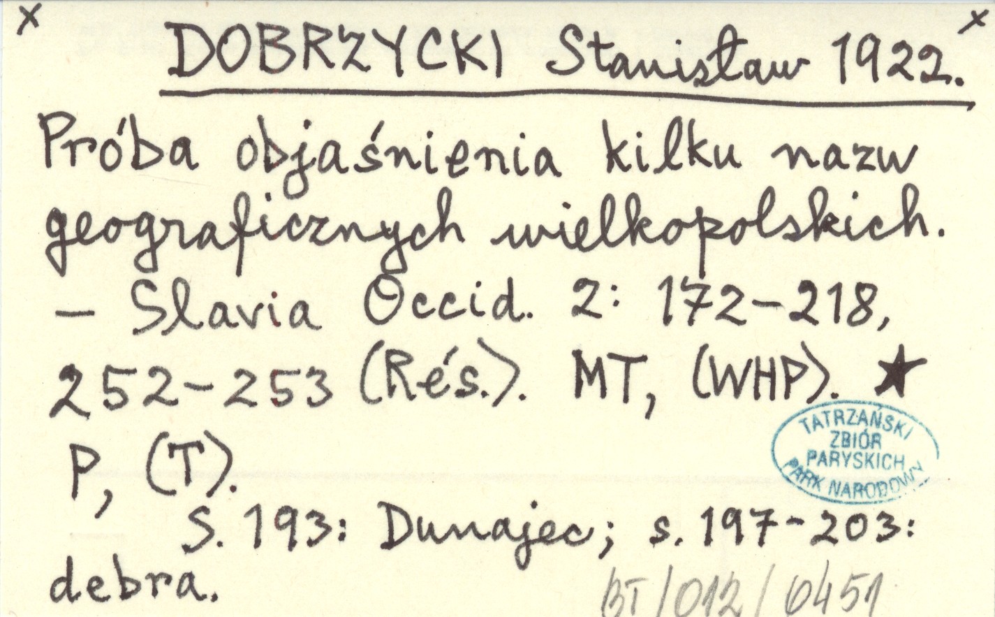 DOBRZYCKI Stanisław 1922 Próba objaśnienia kilku nazw geograficznych wielkopolskich.