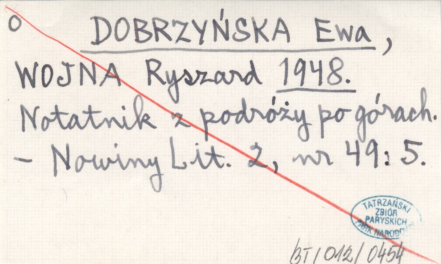 DOBRZYŃSKA Ewa WOJNA, Ryszard. ; 1948 Notatnik z podróży po górach.