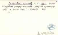 J. D. [DOBRZYŃSKI Juliusz] 1951 Zapobiegawcze pobyty wczasowe (artykuł dyskusyjny).
