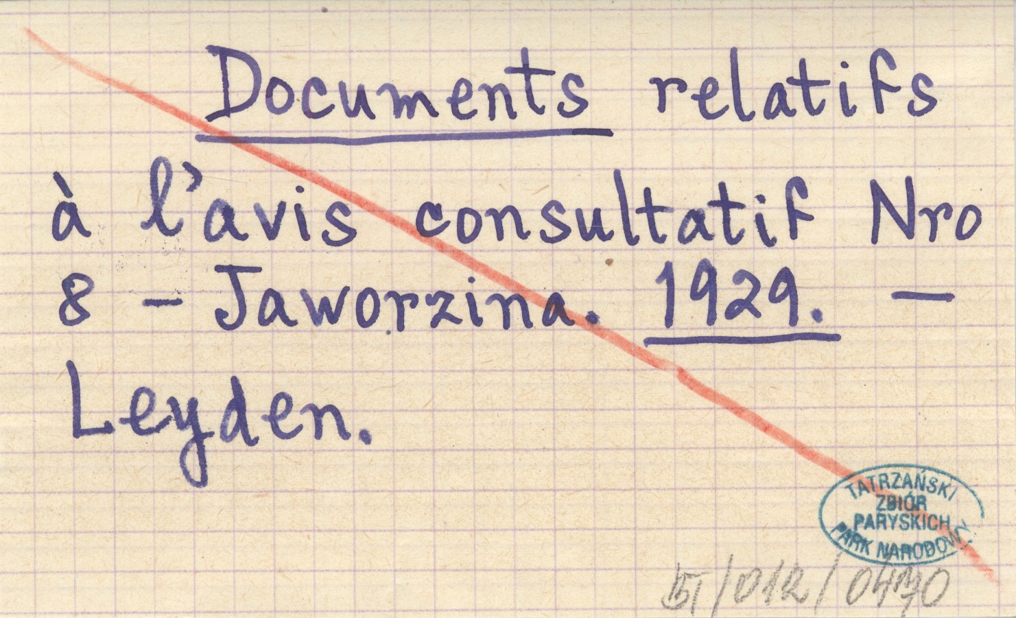 Documents relatifs á l'avis consultatif Nro 8 - Jaworzina. 1929