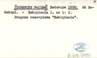 Redakcya [DOERFLER Feliks] 1899 c Od Redakcyi.
