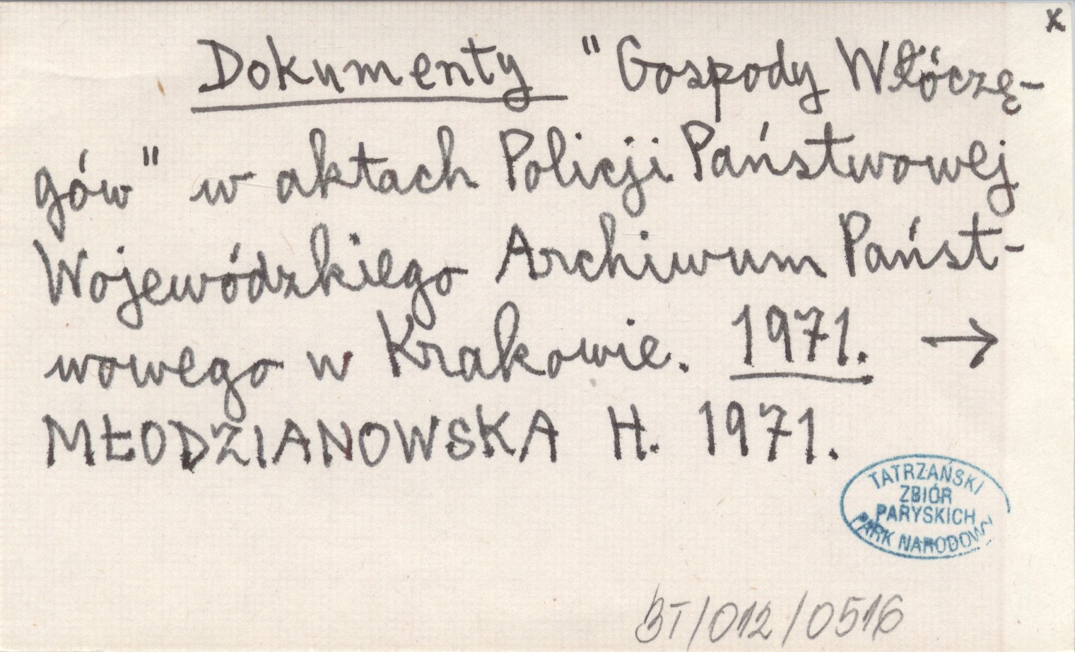 Dokumenty "Gospody Włóczęgów" w aktach Policji Państwowej Wojewódzkiego Archiwum Państwowego w Krakowie. 1971