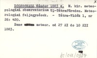 DOLESCHALL Sándor 1883 d M. kir. meteorologiai observatorium Uj-Tátrafüreden. Meteorologiai feljegyzések.