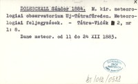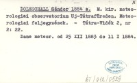 DOLESCHALL Sándor 1884 a M. kir. meteorologiai observatorium Uj-Tátrafüreden. Meteorologiai feljegyzések.