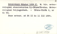 DOLESCHALL Sándor 1884 f M. kir. meteorologiai observatorium Uj-Tátrafüreden. Meteorologiai feljegyzések.