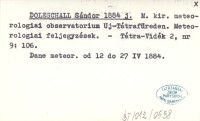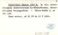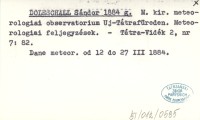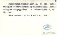 DOLESCHALL Sándor 1884 p M. kir. meteorologiai observatorium Uj-Tátrafüreden. Meteorologiai feljegyzések.