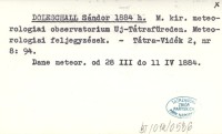 DOLESCHALL Sándor 1884 g M. kir. meteorologiai observatorium Uj-Tátrafüreden. Meteorologiai feljegyzések.
