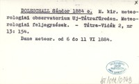 DOLESCHALL Sándor 1884 k M. kir. meteorologiai observatorium Uj-Tátrafüreden. Meteorologiai feljegyzések.