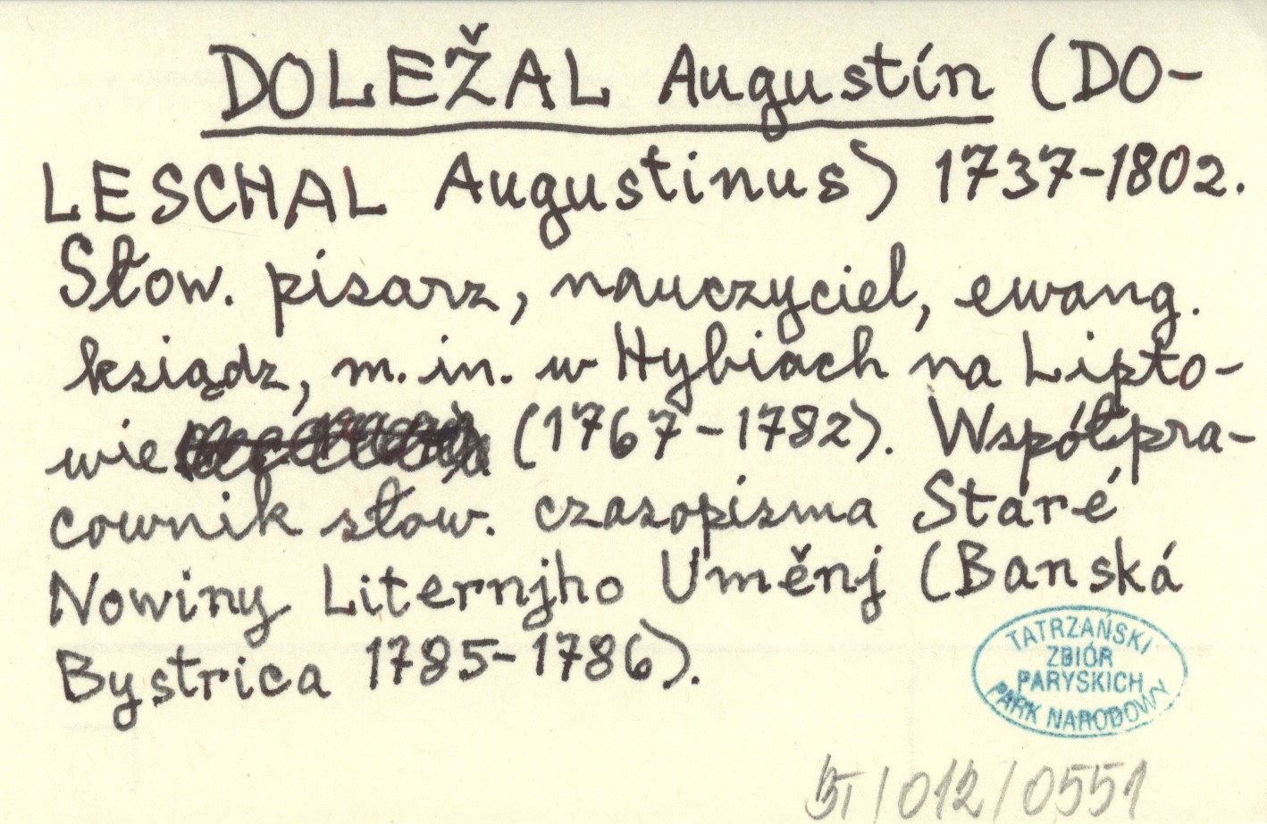 1737-1802. Słowacki pisarz, nauczyciel, ewangelicki ksiądz, m. in. w Hybiach na Liptowie (1767-1782). Współpracownik słow. czasopisma Staré Nowiny Liternjho Uměnj (Banská Bystrica 1785-1786).