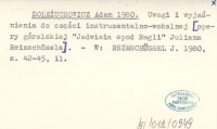 DOLEŻUCHOWICZ Adam 1980 Uwagi i wyjaśnienia do części instrumentalno-wokalnej [opery góralskiej "Jadwisia spod Regli" Juliana Reimschüssla].