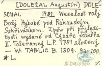 DOLESCHAL Augustinus [DOLEŽAL Augustín] 1781 Weselost rolj Božj Hybské pod Rakauským Sskřivánkem. Zpěw při přjležitosti wydané od Cýsaře Jozeffa II. Tolerancý L. P. 1781 složený.