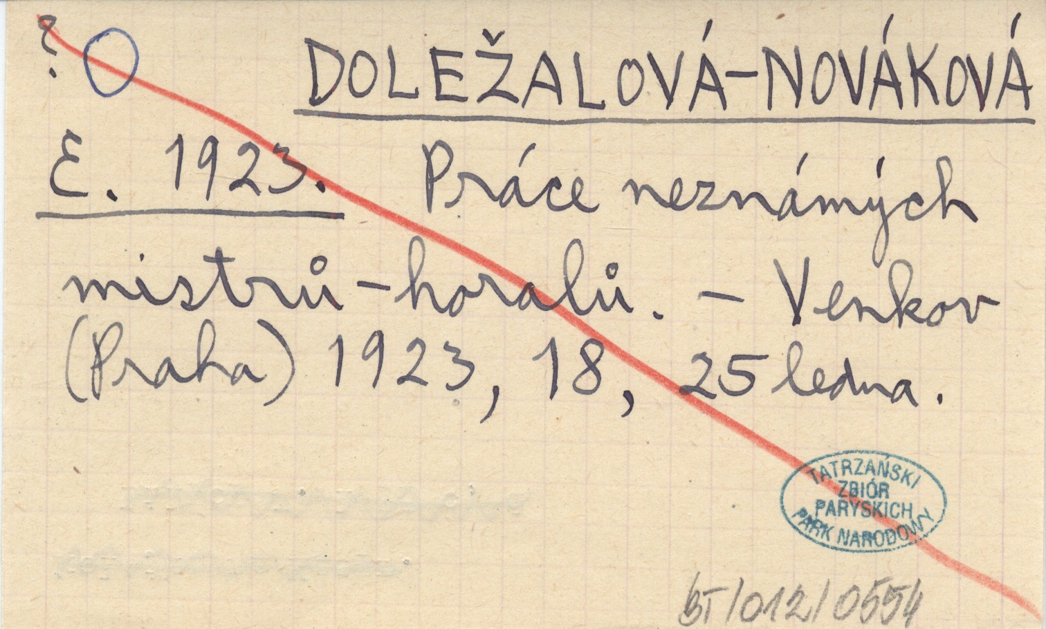DOLEŻALOVÁ-NOVÁKOVÁ E. 1923 Práce neznámých mistrů-horalů.