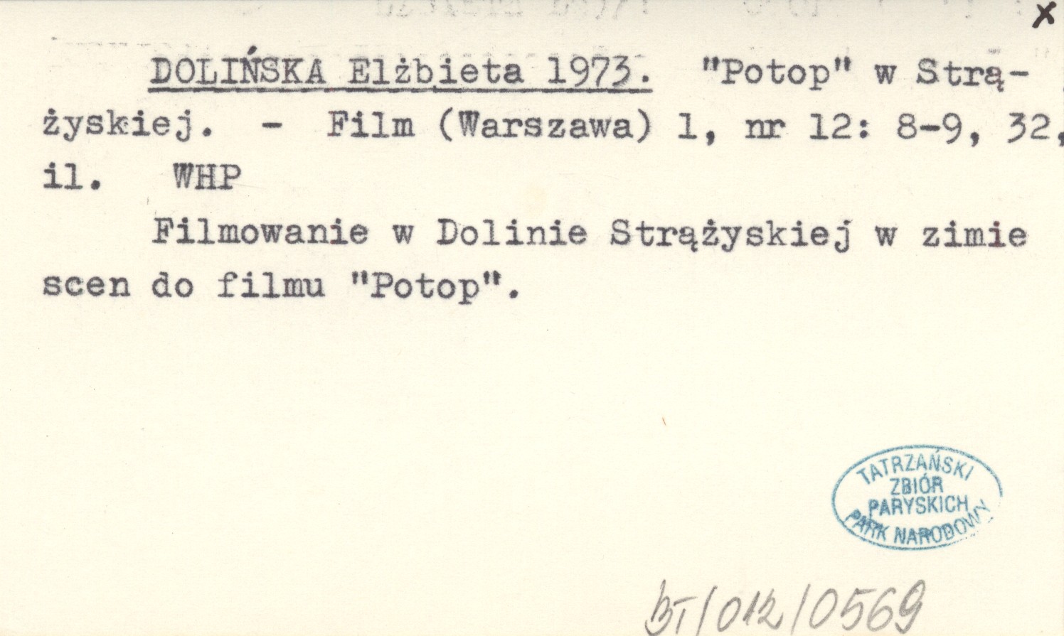 Film (Warszawa) , 1, nr 12: 8-9, 32, il. Filmowanie w Dolinie Strążyskiej w zimie scen do filmu "Potop".