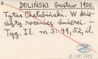 DOLIŃSKI Gustaw 1900 Tytus Chałubiński. W dziesiątą rocznicę śmierci.