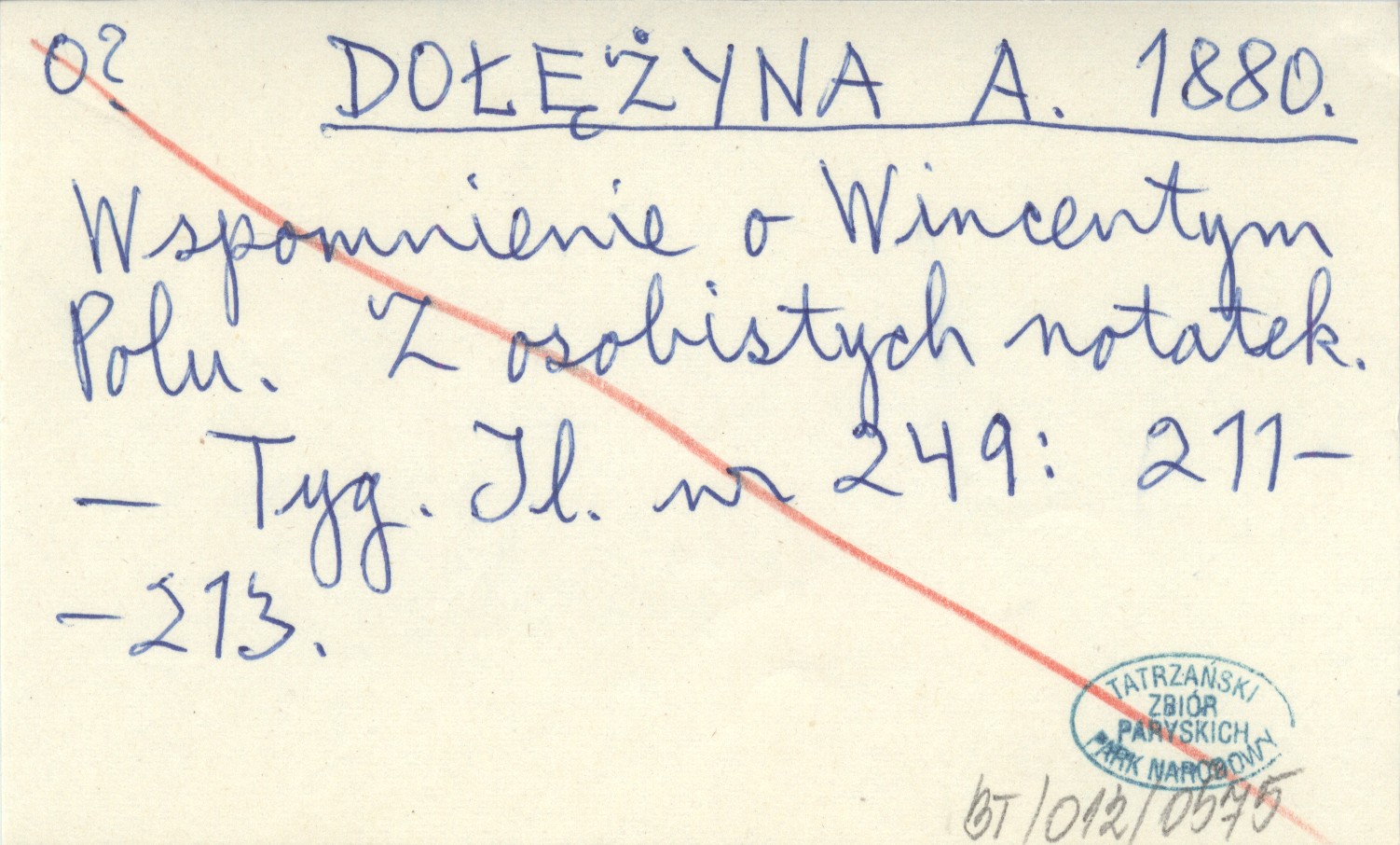 DOŁĘŻYNA A. 1880 Wspomnienie o Wincentym Polu. Z osobistych notatek.