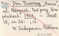 Dom Towarowy "Omnia", ul. Narynek, tuż przy Krupówkach. 1924