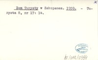 Dom Turysty w Zakopanem. 1959