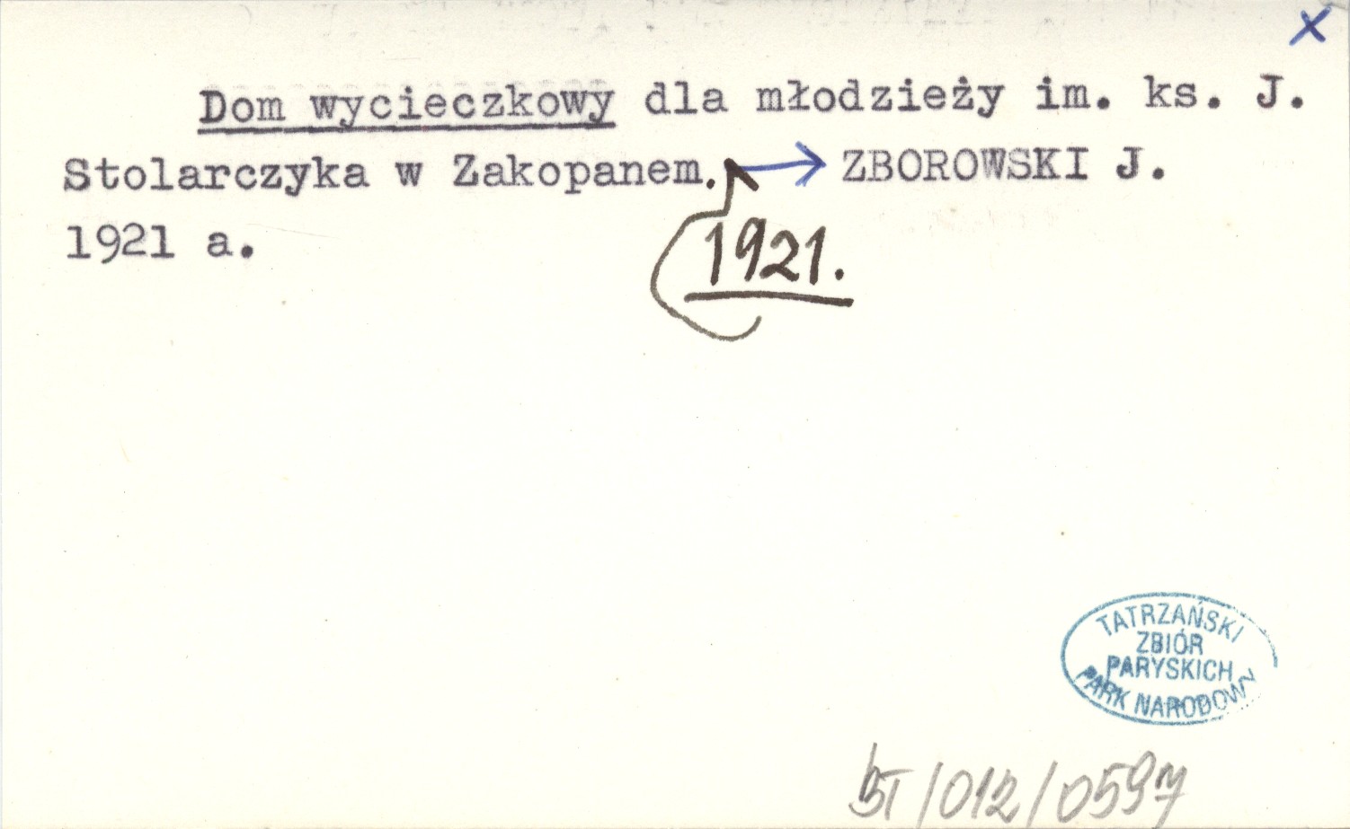 Dom wycieczkowy dla młodzieży im. ks. J. Stolarczyka w Zakopanem. 1921