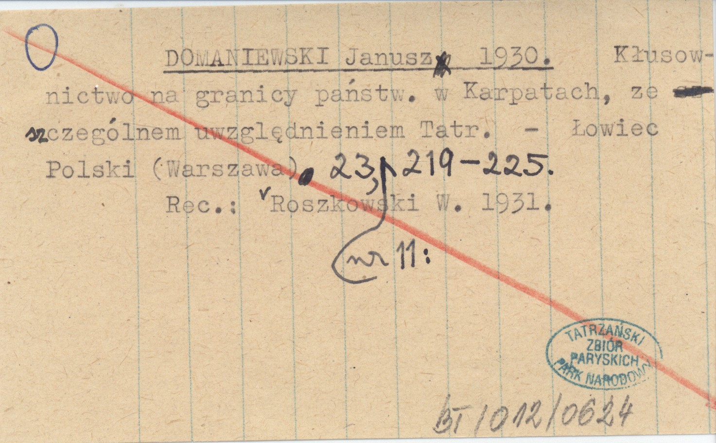 Łowiec Polski (Warszawa) , 23, nr 11: 219-225. REC: ROSZKOWSKI W. 1931