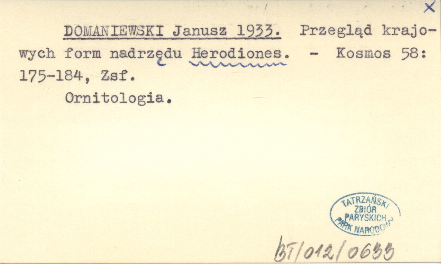 DOMANIEWSKI Janusz 1933 Przegląd krajowych form nadrzędu Herodiones.