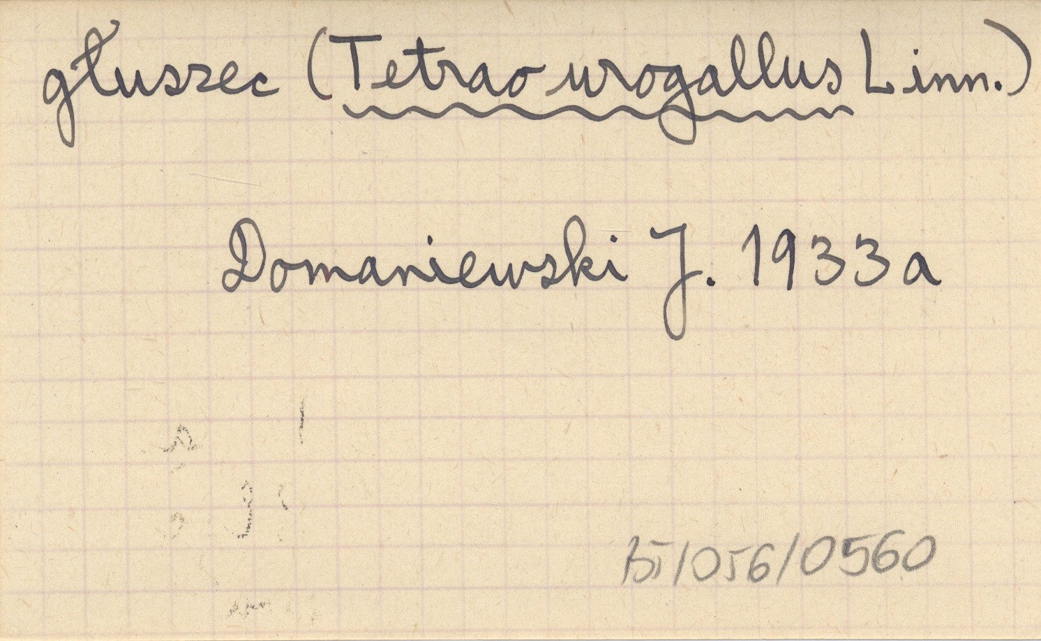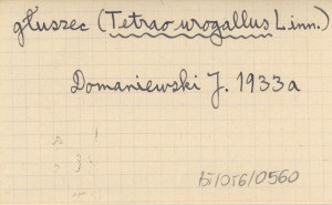 DOMANIEWSKI Janusz 1933 a Materjały do rozmieszczenia głuszcza (Tetrao urogallus Linn.) w Polsce.