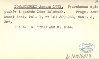 DOMANIEWSKI Janusz 1931 Tyzenhauza spis ptaków i ssaków Ziem Polskich.